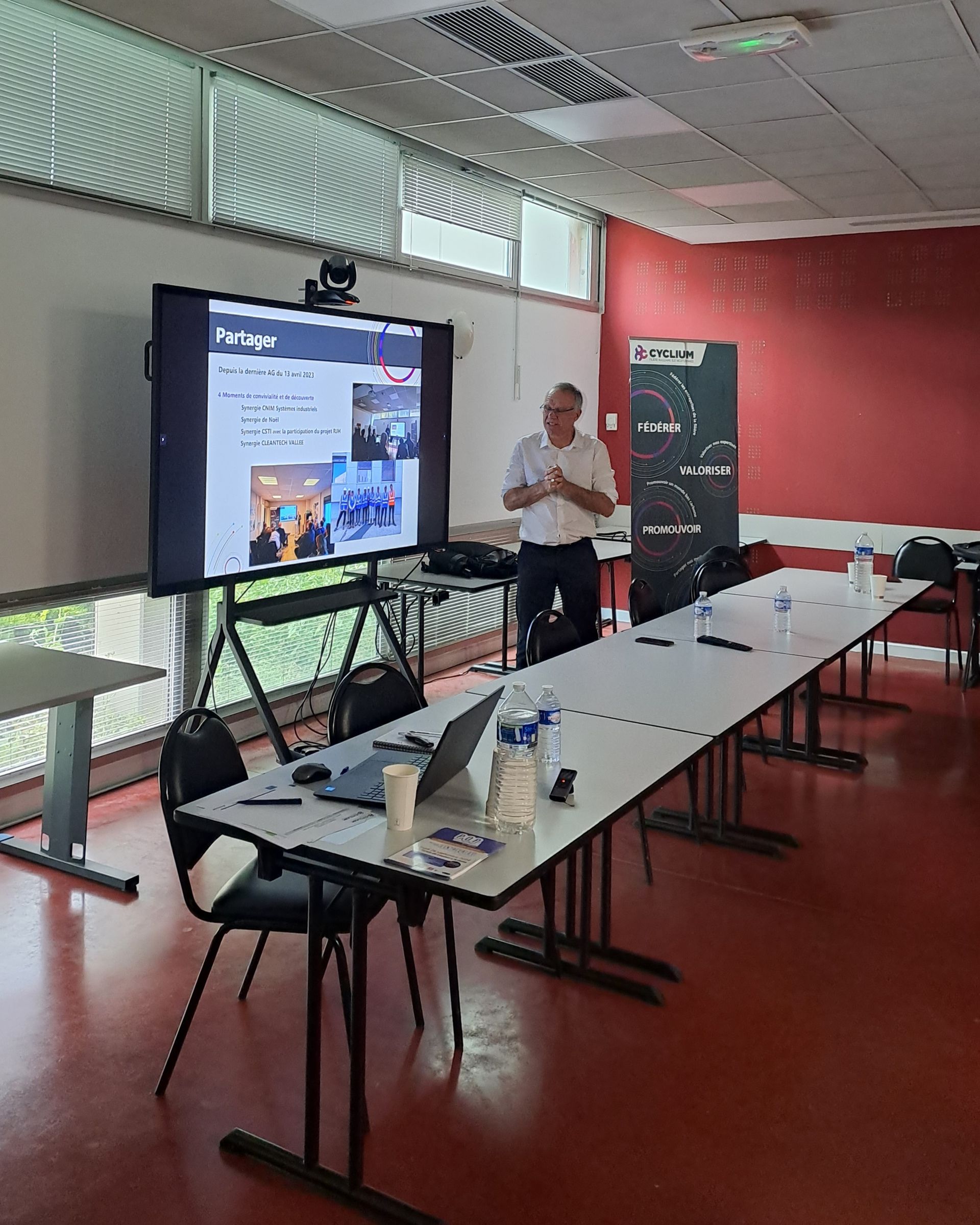 Ce fut aussi l’occasion pour CYCLIUM d’accueillir David Emond, Directeur du projet RJH, Sébastien ARNAUD, Directeur Supply chain et Raphaël Palhier , Responsable projet domaine expérimental pour une présentation de la feuille de route d’achèvement et une synthèse de l’avancement du projet RJH.