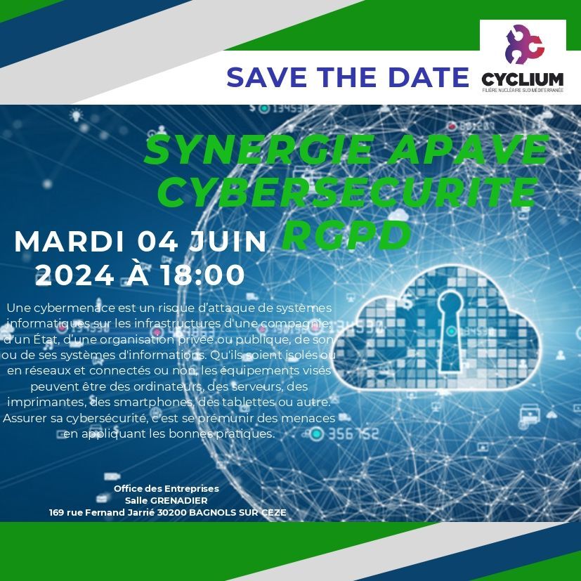 À noter dans vos agendas, prochain RDV ; notre synergie avec pour thème la Cybersécurité & le RGPD présenté par l’APAVE, du 04 Juin à 18.00, à l’Office des Entreprises à Bagnols sur Cèze.